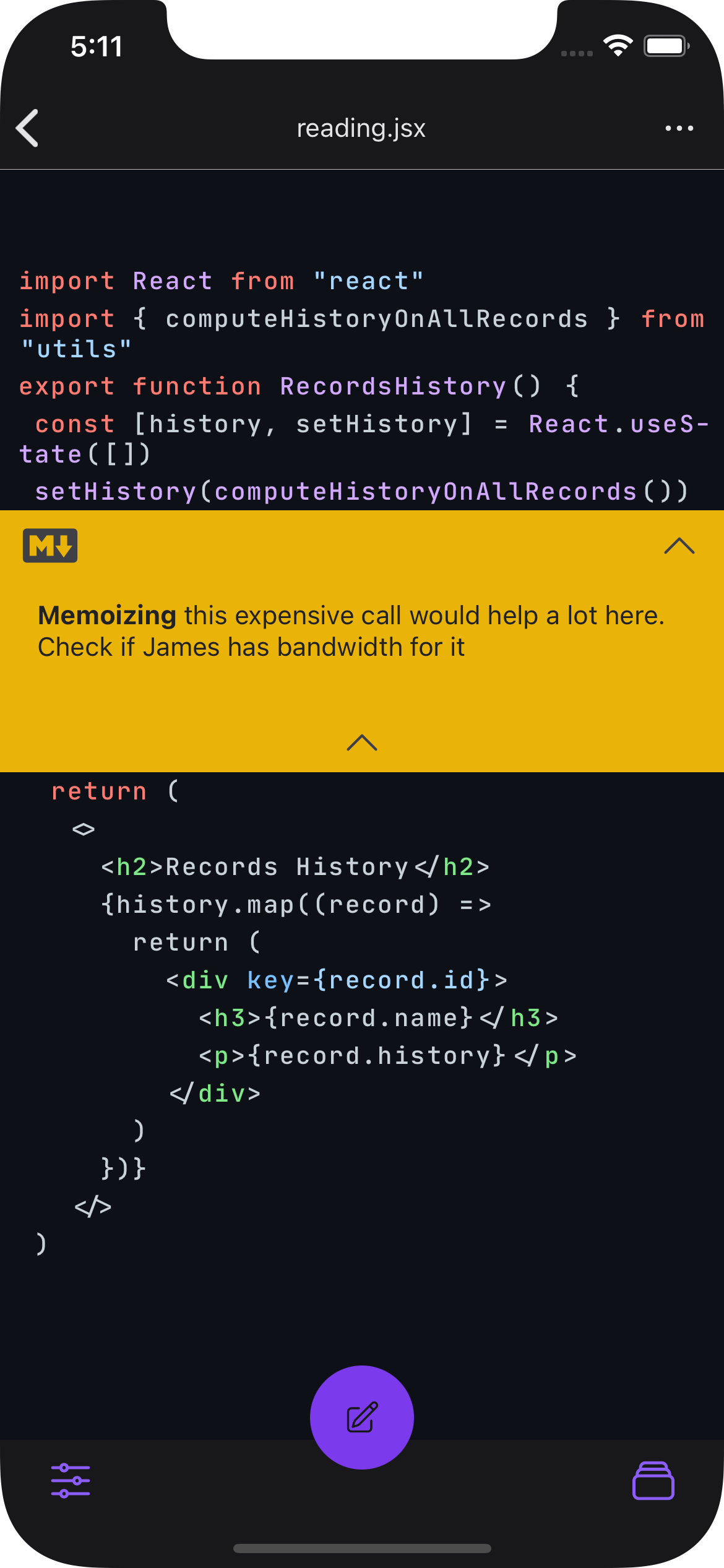 You can now write down your to-dos and annotate your ideas right where the code lives. Take notes about upcoming features, bugs, ideas, and more.